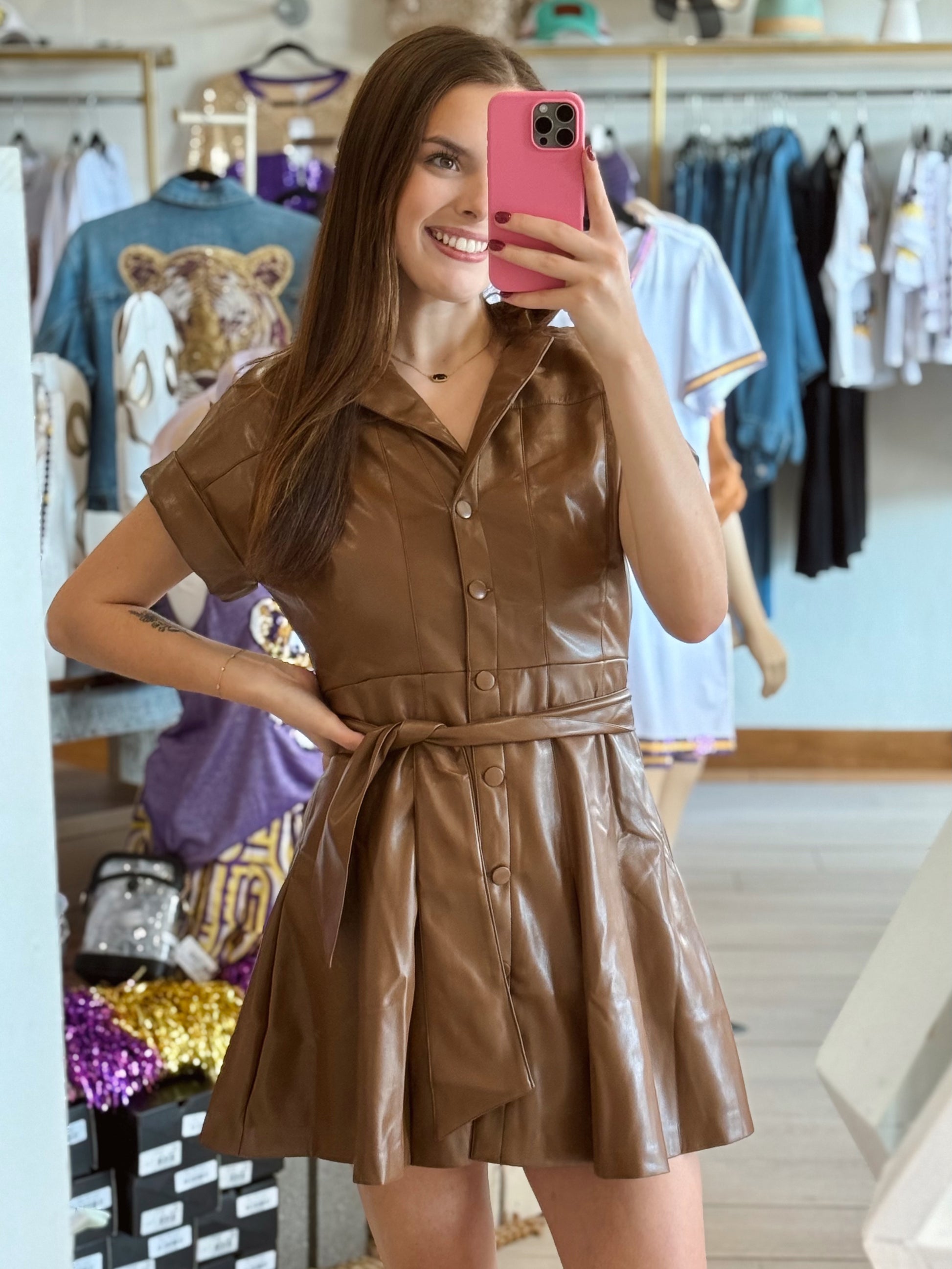 Crafted in a soft camel hue, this mini features a flattering silhouette that’s both timeless and trendy. Perfect for layering with boots and a jacket for fall or dressing up with heels and gold jewelry for a night out. Whether you’re headed to brunch, date night, or a special event, this versatile piece is one you’ll wear again and again.