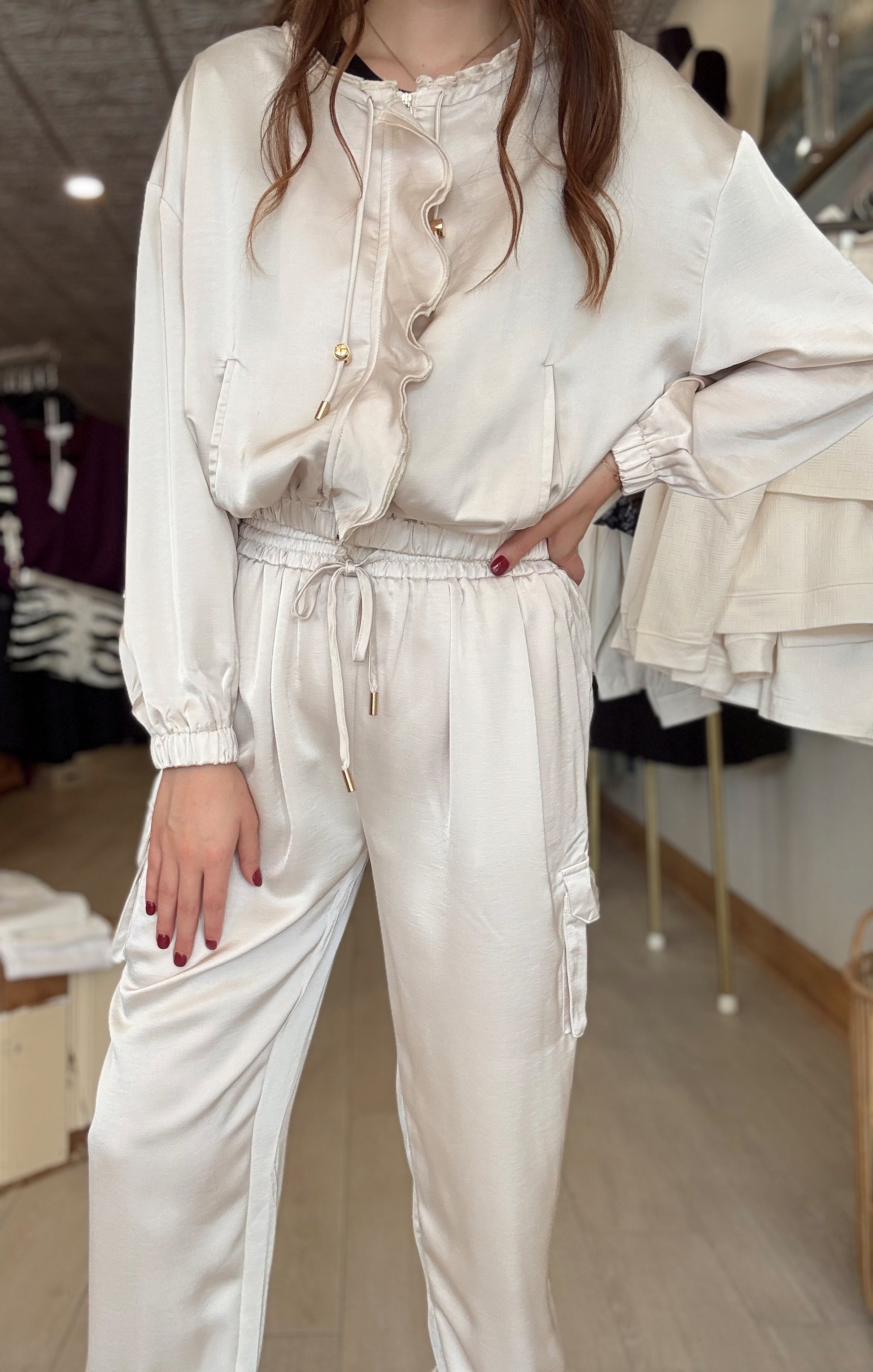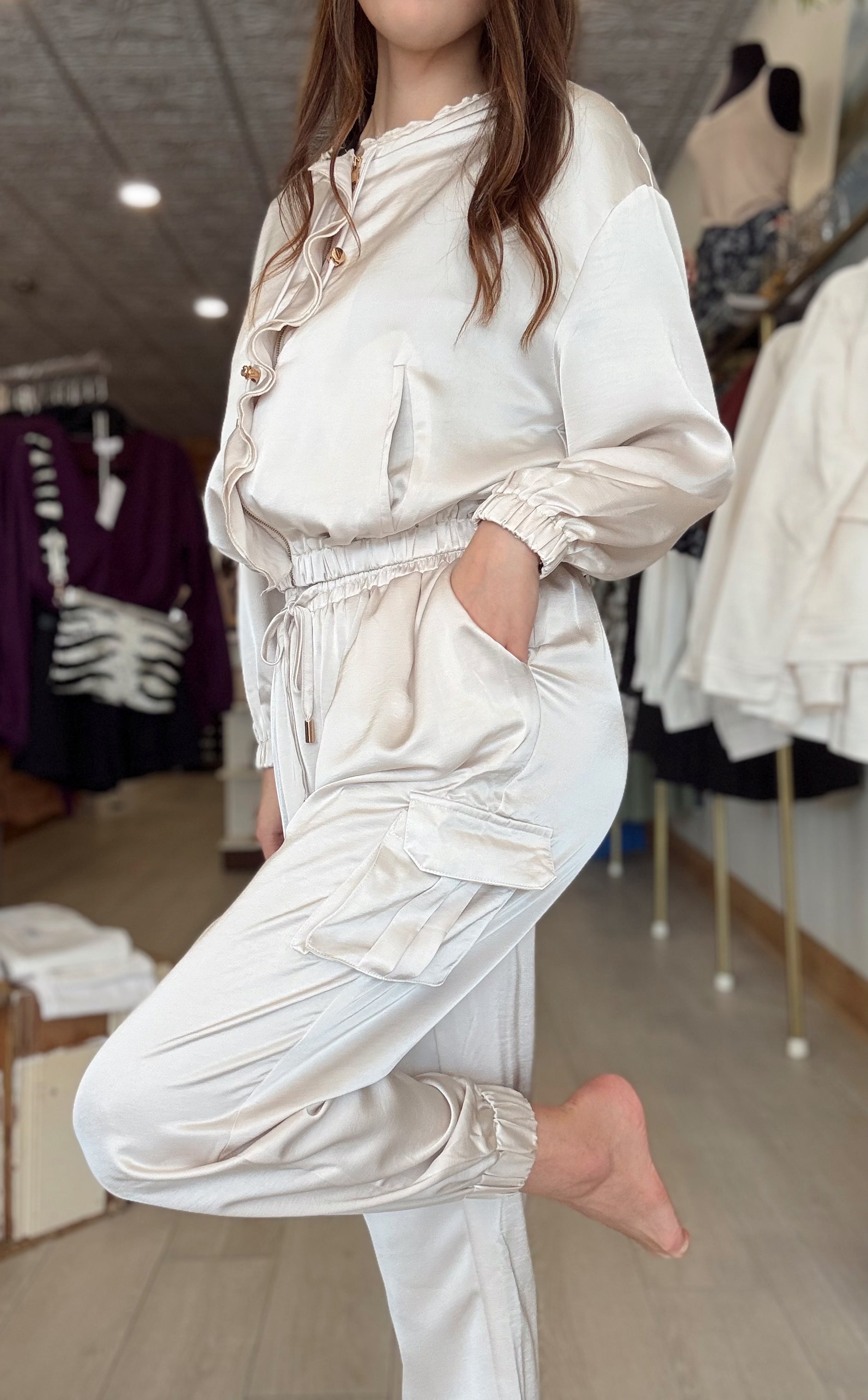 Elevate your everyday style with our Satin Luxe Cargo Pants, the perfect blend of chic and comfort. Crafted from a soft satin-like fabric with a subtle sheen, these pants feature an elastic waistband with a drawstring tie for the perfect fit. The relaxed silhouette and side cargo pocket add a touch of casual edge, while the silky finish keeps it effortlessly polished. Whether dressed up with heels or styled down with sneakers, these pants are versatile enough for lounge, errands, or nights out.