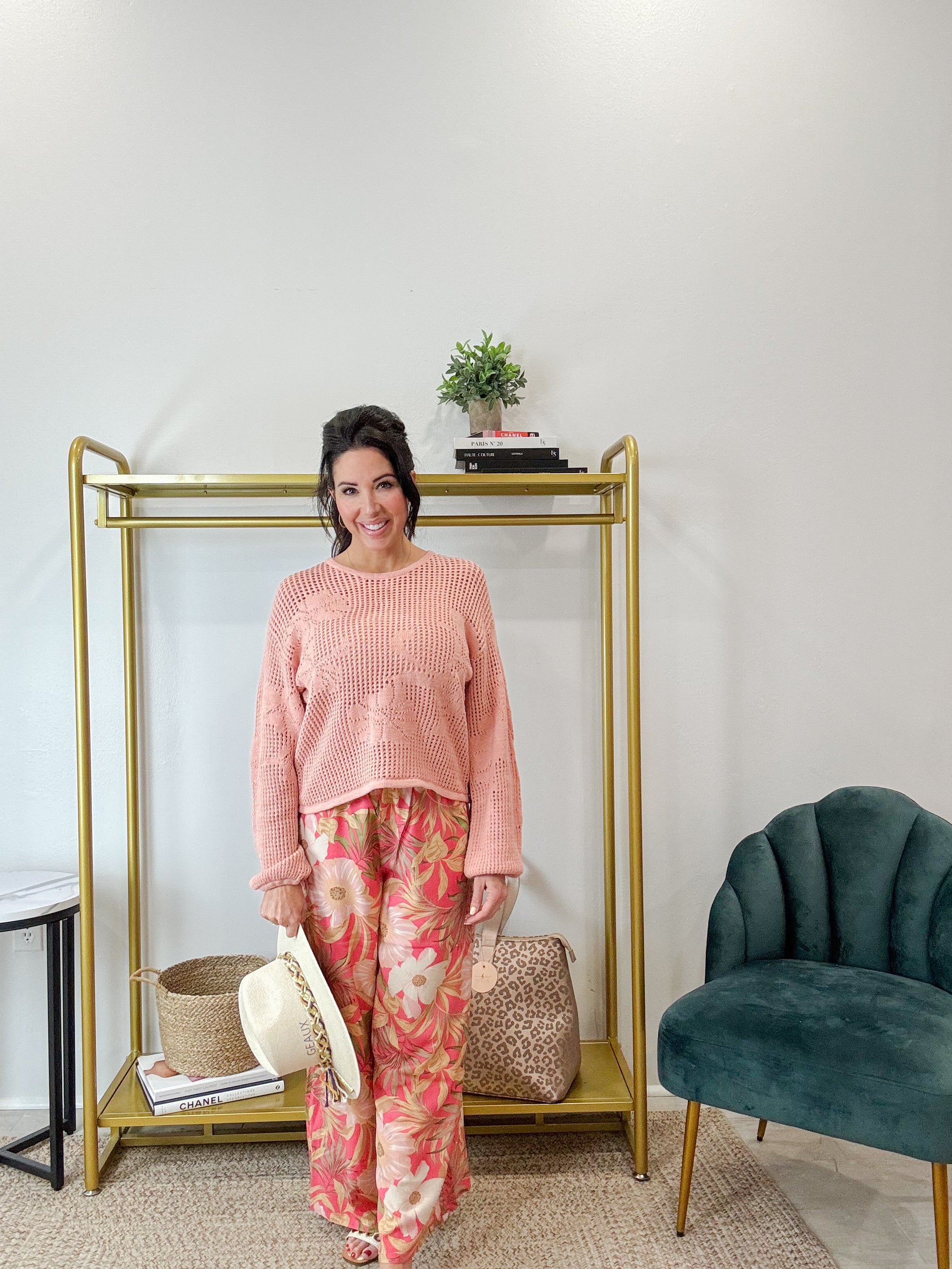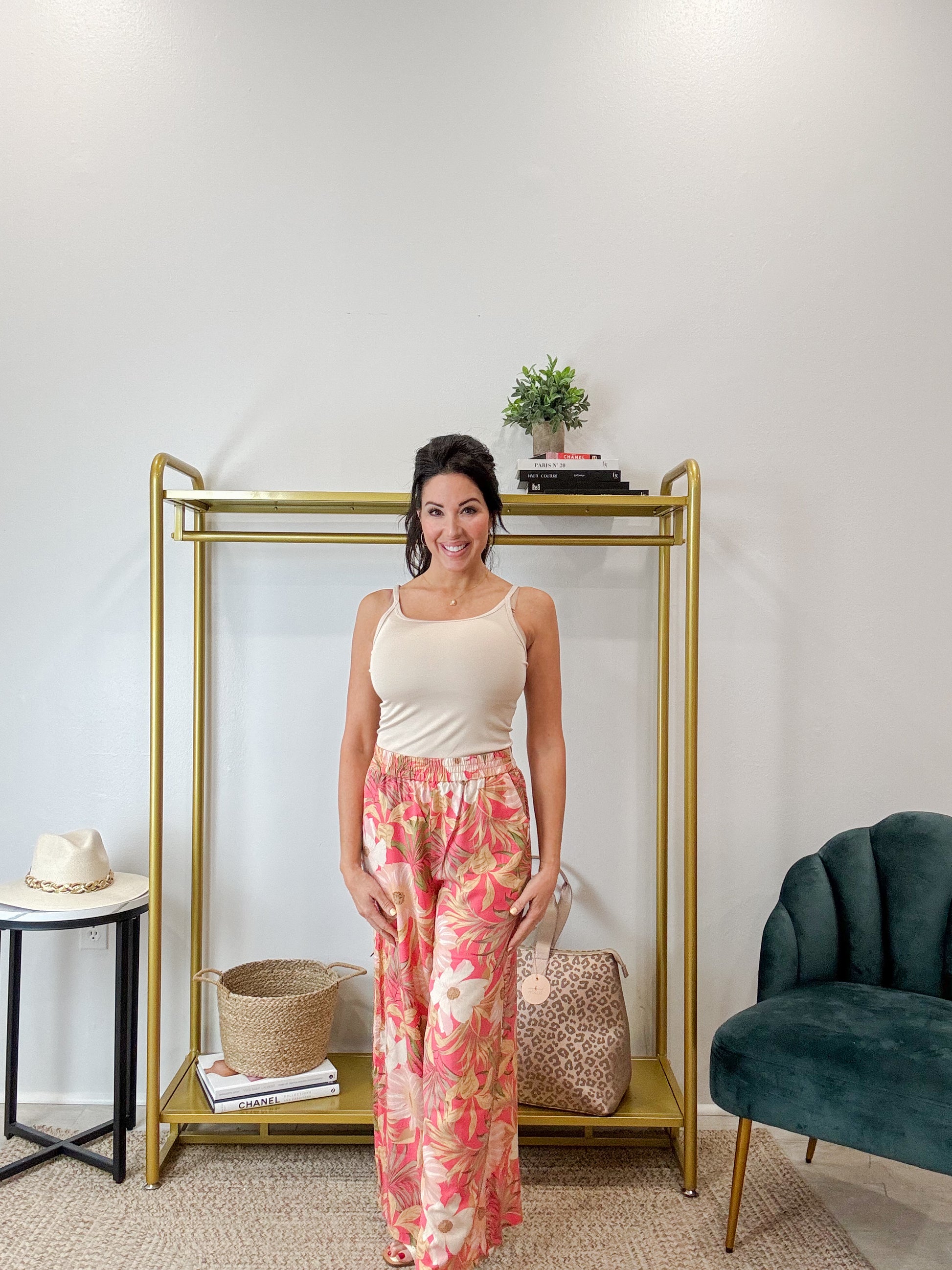 The Z Supply Dante Barra Tropic Pant in Sunset Pink is a stylish and comfortable high-rise, wide-leg pant featuring a vibrant tropical print. Made from 100% rayon, these pants offer a relaxed fit with a lightweight, non-stretch weave. They include practical features such as side seam pockets and a smocked, elastic waistband for added comfort. The pants are ankle-length and lined, providing a polished yet casual look suitable for various occasions. Care instructions recommend hand washing in cold water and laying flat to dry, or opting for dry cleaning to maintain the fabric's quality.
