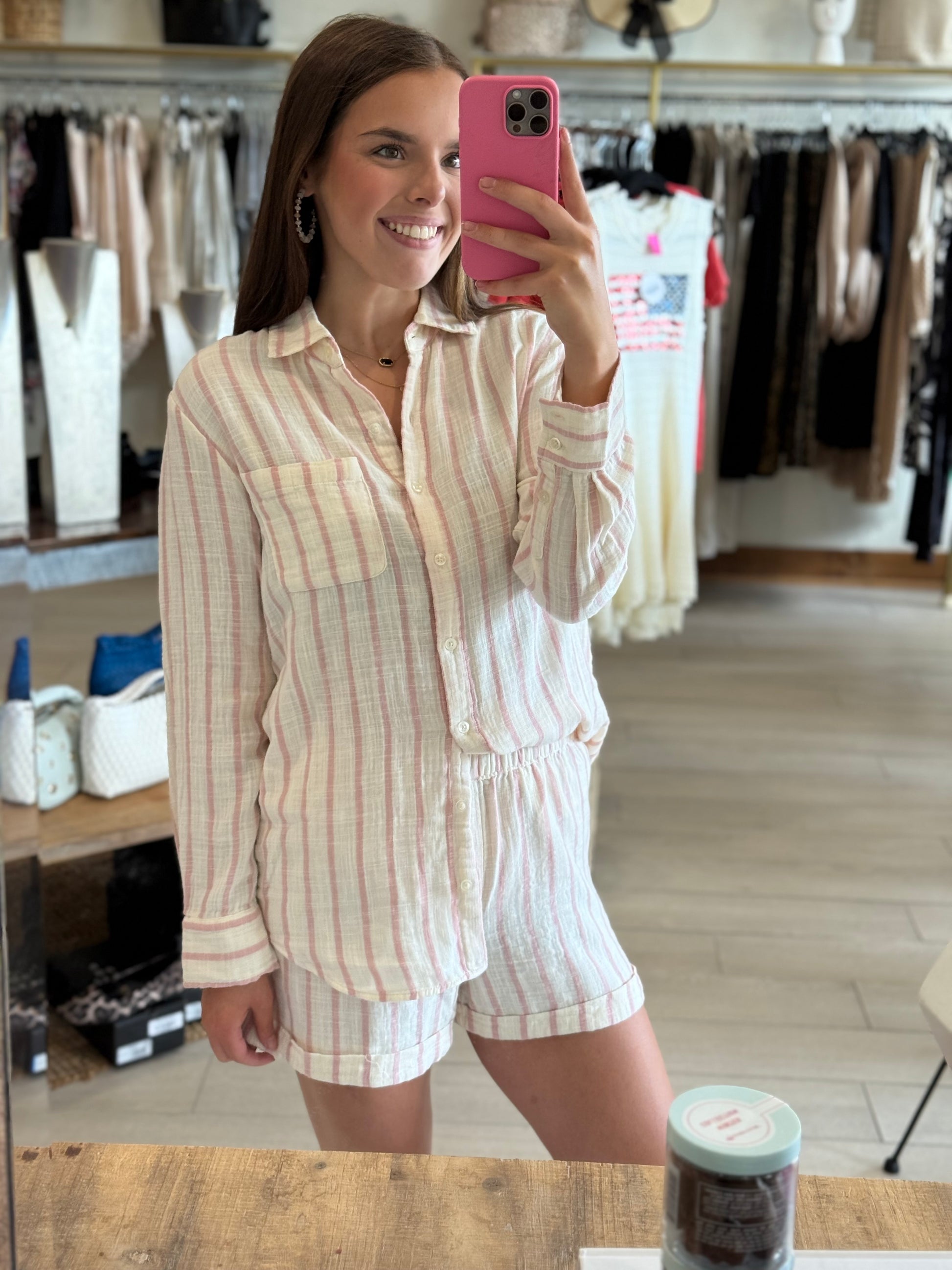 Effortlessly comfortable, these relaxed high-rise shorts are made from breathable double-layer gauze with a midweight feel. Designed with an elastic waistband, they’re perfect for lounging or laid-back weekend plans.