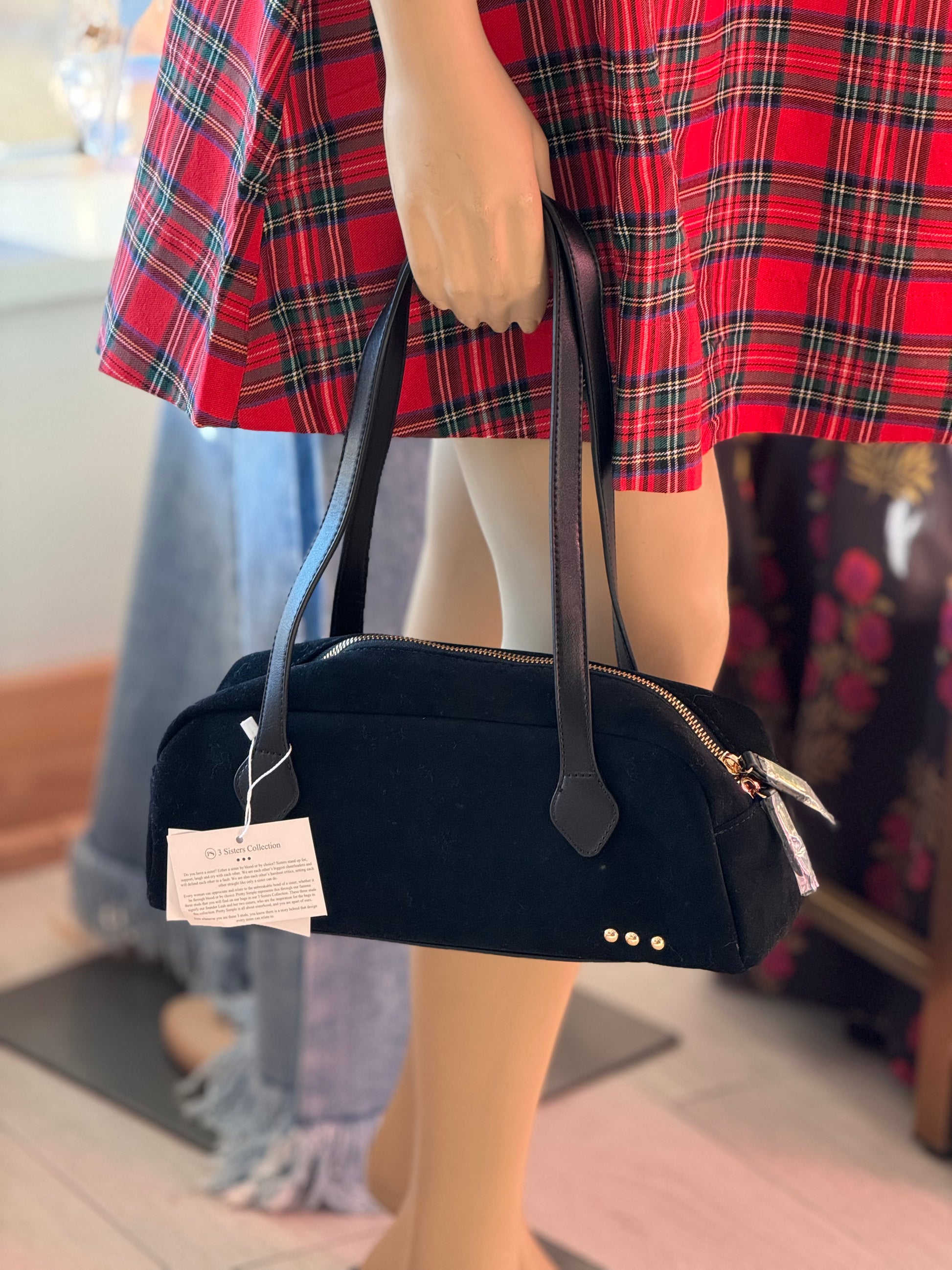 Chic, structured, and perfectly giftable — meet The Sleigh All Day Satchel! This luxe suede-like handbag adds effortless polish to any outfit with its classic shape and subtle gold accents. Featuring top handles, a smooth zipper closure, and just the right amount of room for all your on-the-go essentials, it’s the bag you’ll carry all season long. Available in three timeless shades — oat, camel, and black — to complement every holiday look from cozy sweaters to sequin nights.