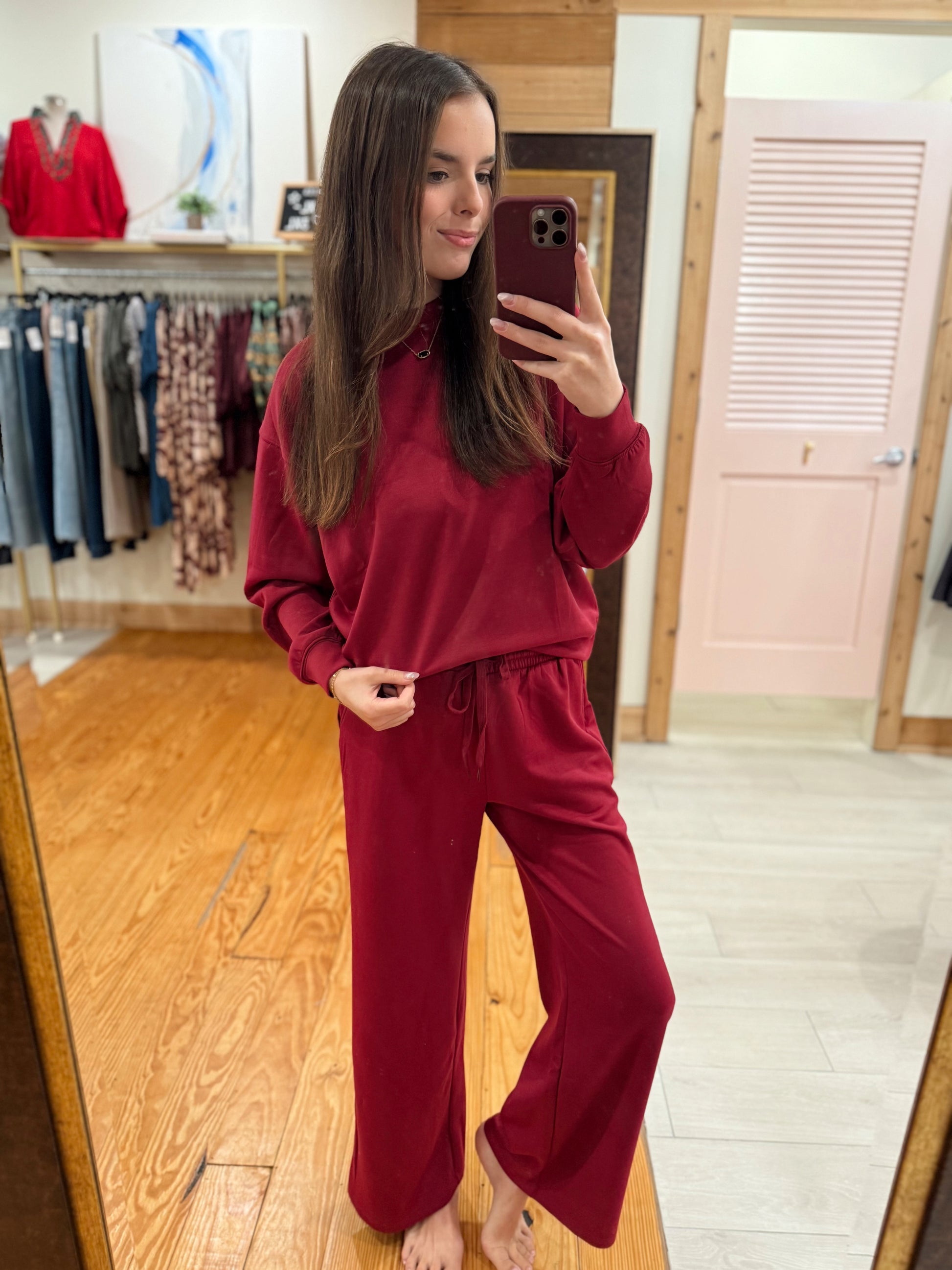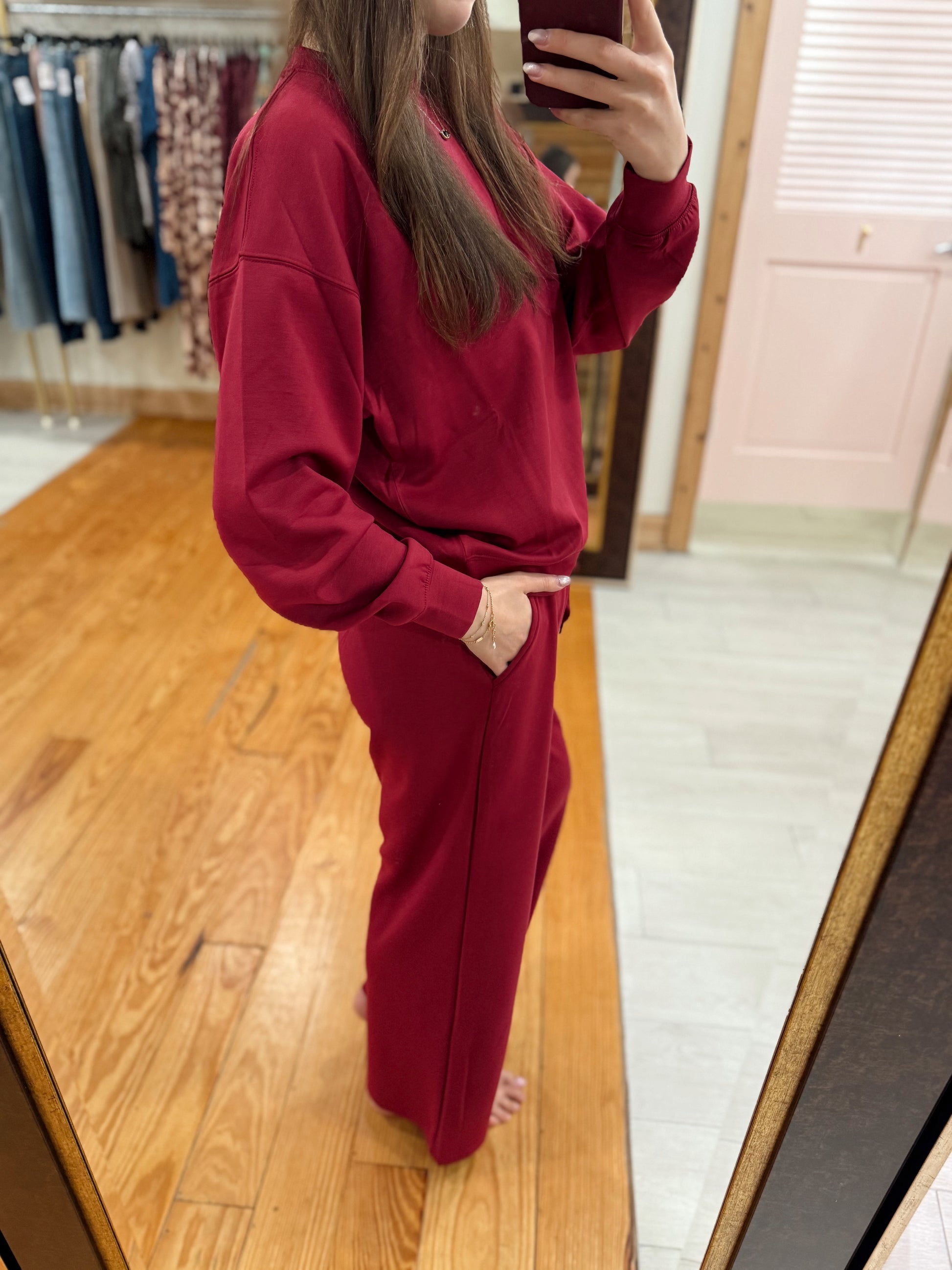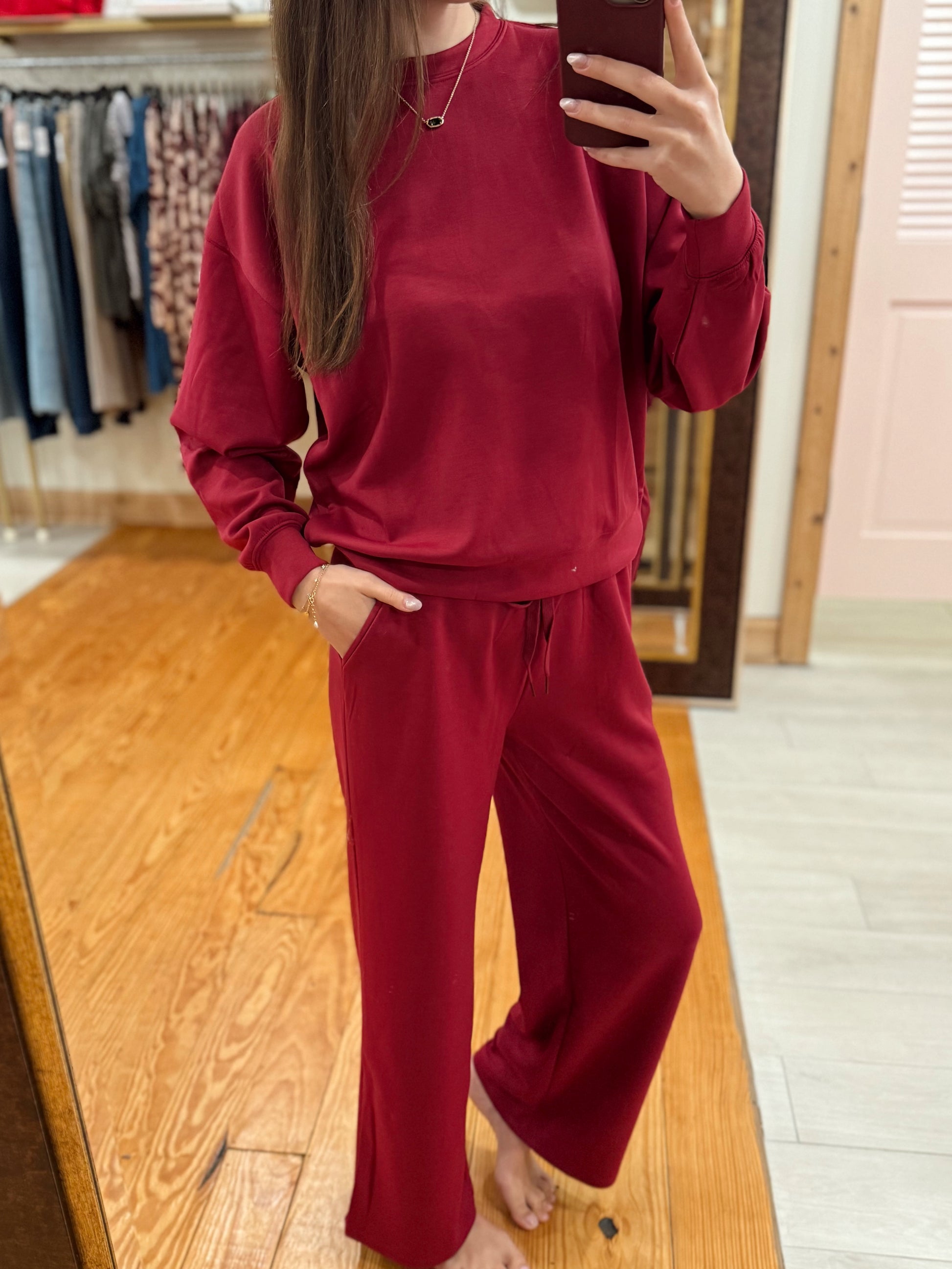 Stay cute and cozy this season in our Merry & Mellow Set! This comfy matching sweatshirt and wide-leg pant duo brings laid-back luxury to your holiday lounging. The soft cotton-blend fabric and relaxed fit make it perfect for travel days, cozy nights in, or casual errands that still call for a little style. Pair it with sneakers for a cool, effortless vibe or slippers for a festive movie marathon.