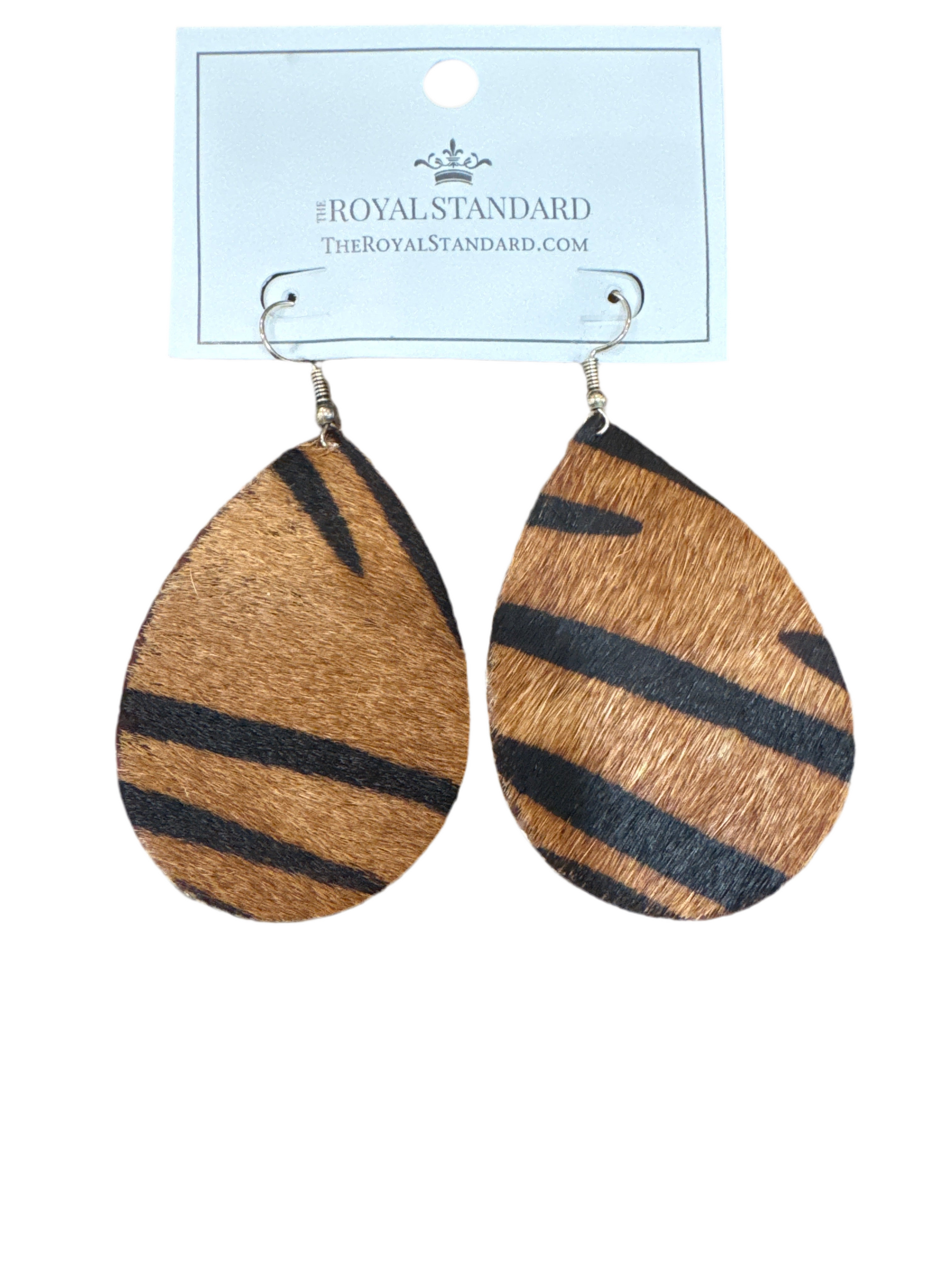 Add a fierce touch of Geaux Tigers energy to your look with our Tiger Gleaux Earrings. These teardrop-shaped beauties feature a bold tiger-stripe pattern on genuine hair-on hide, blending wild style with game-day glam. Lightweight yet eye-catching, they’re perfect for LSU games, fall outfits, or any day you’re feeling a little extra fierce.