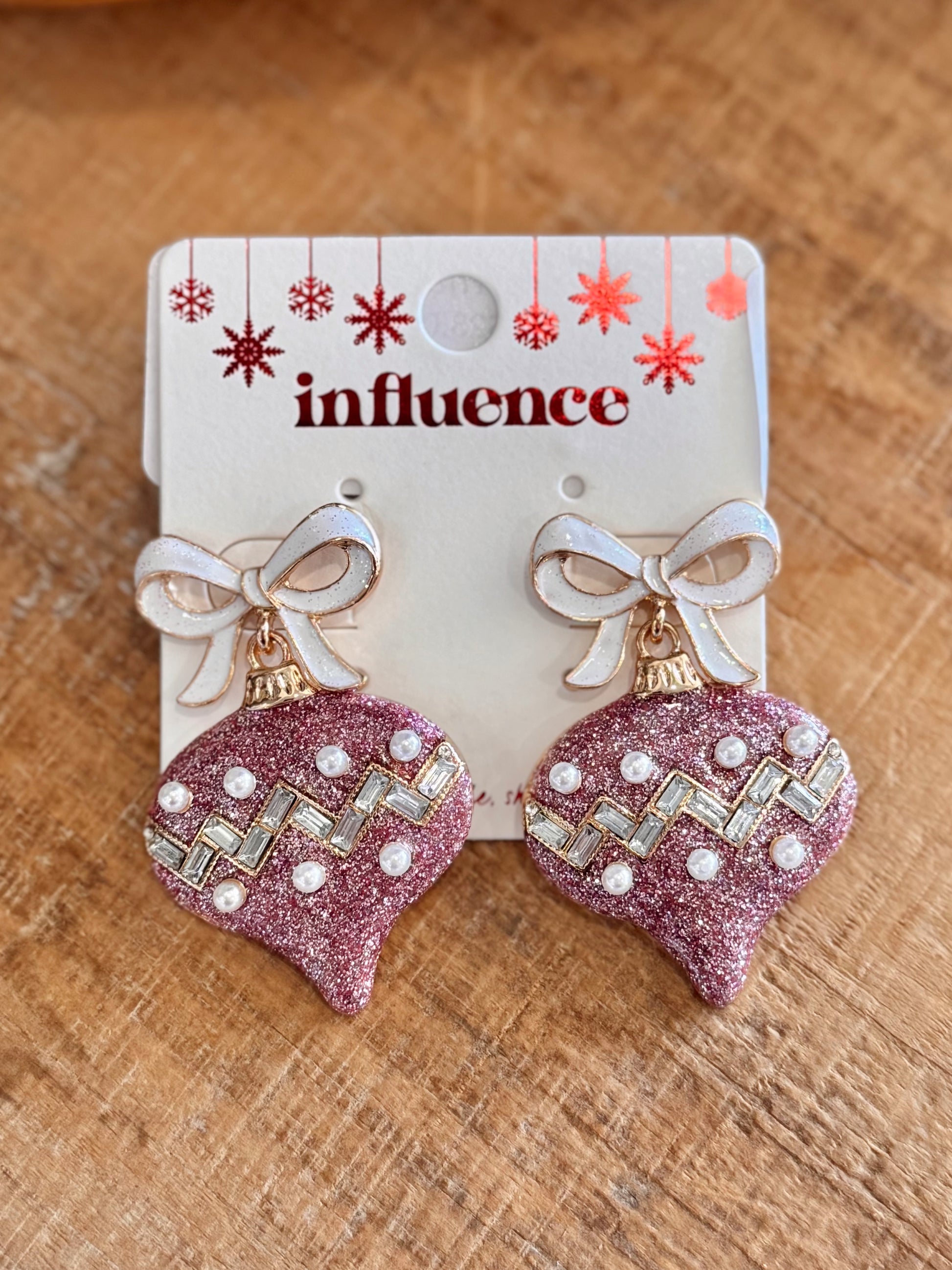Sweet, sparkly, and oh-so-festive — our Sugar Plum Ornament Earrings are holiday perfection! 💗✨ These glittery pink ornament-style earrings feature delicate pearl and crystal details, topped with a shimmery bow for that extra touch of charm. Lightweight yet statement-worthy, they’re perfect for adding a little glam to your Christmas party look or gifting to your favorite sparkle lover.