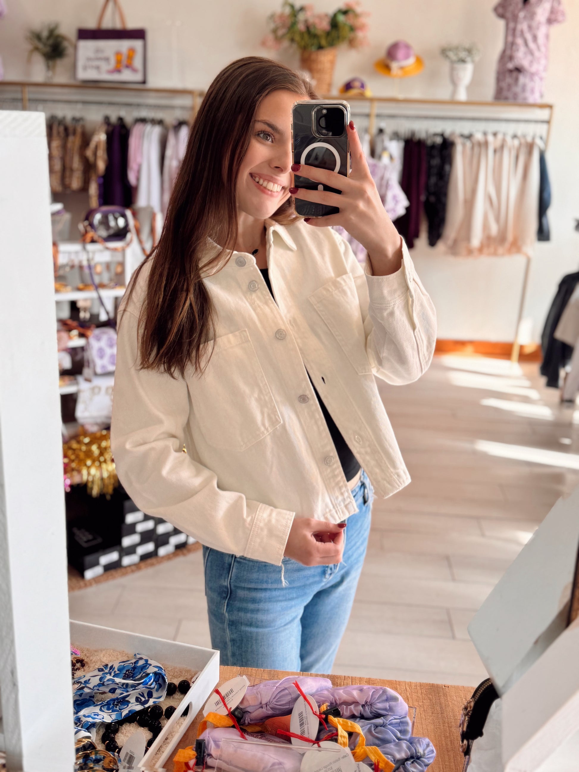 Crafted from premium fabric, it features a relaxed fit, button-front closure, and subtle distressing details for a laid-back yet polished vibe. Functional pockets and a soft, cozy feel make this jacket as practical as it is stylish. Whether paired with jeans and a tee for a casual day out or layered over a dress for an elevated look, this versatile jacket is a closet essential you’ll reach for season after season. Timeless, classic, and endlessly chic—this is the jacket your wardrobe has been waiting for!